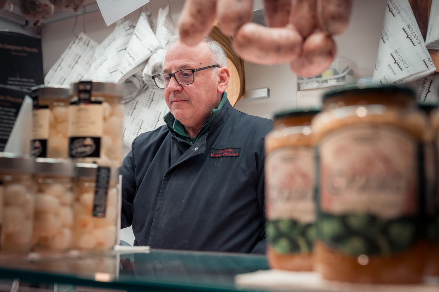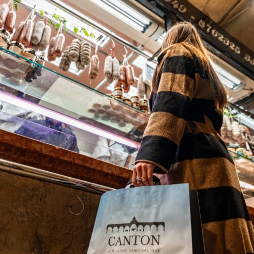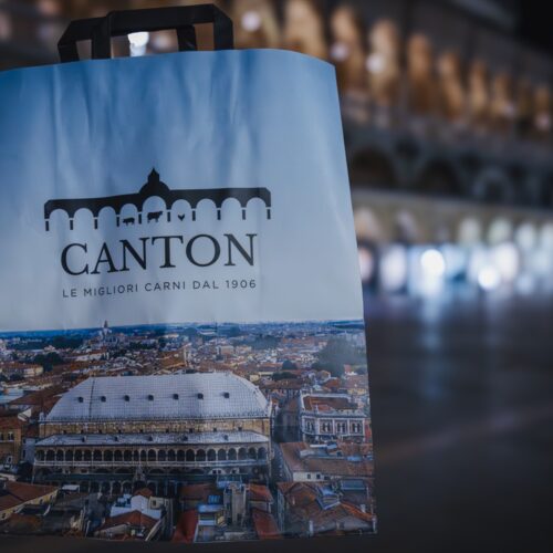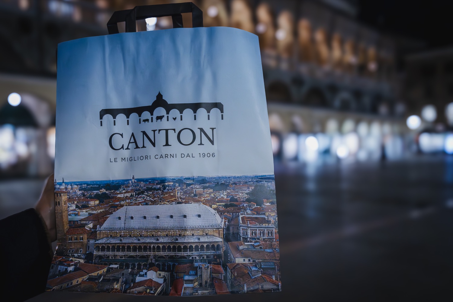L’attività fonda le sue origini documentante dal 1906, data in cui il comune rilasciava una concessione comunale per l’utilizzo del banco sotto il salone a Natale Canton. Da notare che veniva concesso la vendita di “carnami suini”, proseguì poi con il figlio Antonio, il nipote Rino e oggi è condotta da Francesco, quindi quarta generazione della famiglia Canton. Nel corso degli anni la tipologia di vendita è variata, si è attualizzata attraverso nuove richieste di consumo. La tipologia di vendita della carne si basa su principi di ricerca di prodotti di alta qualità, sia per quanto riguarda la carne bovina che i prodotti avicunicoli. Una delle specificità è che le carni sono prodotte in esclusiva da una piccola azienda di Pozzonovo “Fratelli Maculan” dopo aver concordato modalità di allenamento, scelta della razza, metodi e tempi di alimentazione.